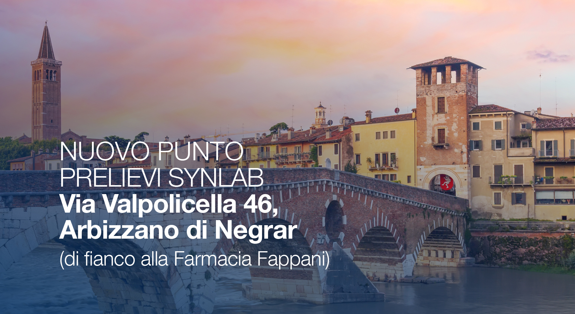 SYNLAB rafforza la sua presenza sul territorio aprendo un nuovo Punto Prelievi in Via Valpolicella 46 ad Arbizzano di Negrar (di fianco alla Farmacia Fappani).